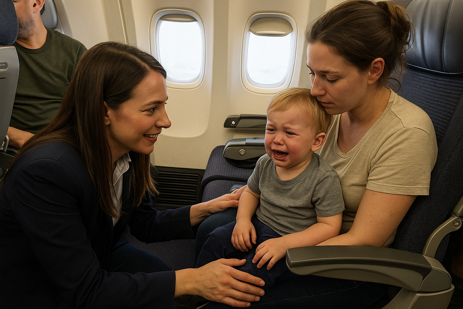 It started like this: A young child, no older than two, sat in the middle seat between tired parents. The roar of the engine, the confined space, and the unfamiliar faces were just too much. He began to cry—loudly, desperately, the way only toddlers can. His parents did their best, juggling snacks, toys, and soothing words, but nothing helped. Heads turned. A few passengers shifted uncomfortably. Some sighed. Others pulled out their headphones.